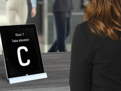 将平板电脑用作临时目的选层操作面板,使用通力RemoteCall™应用程序召唤电梯。